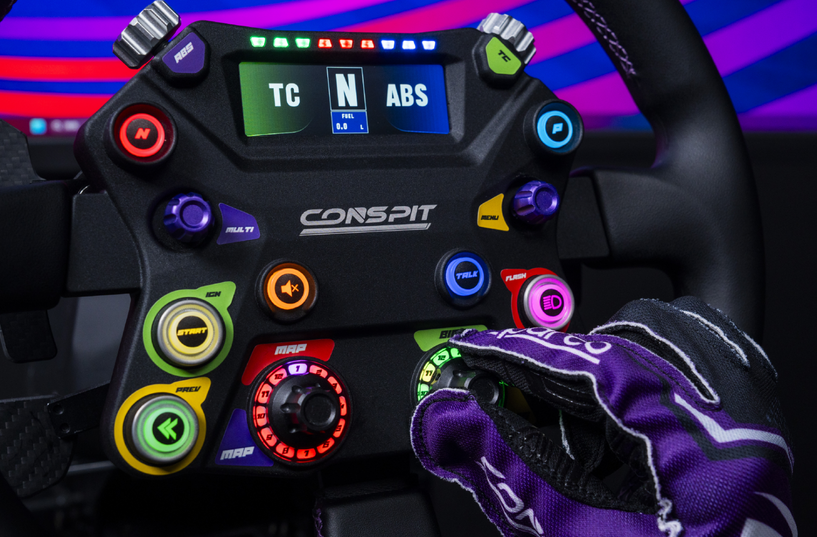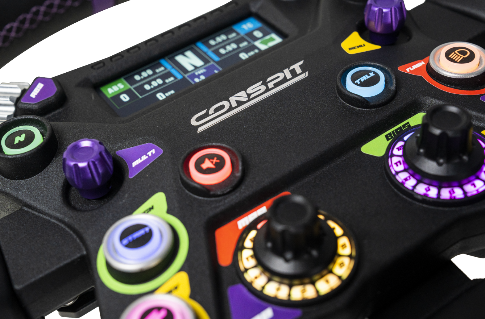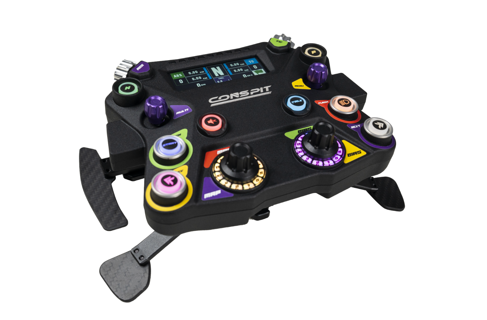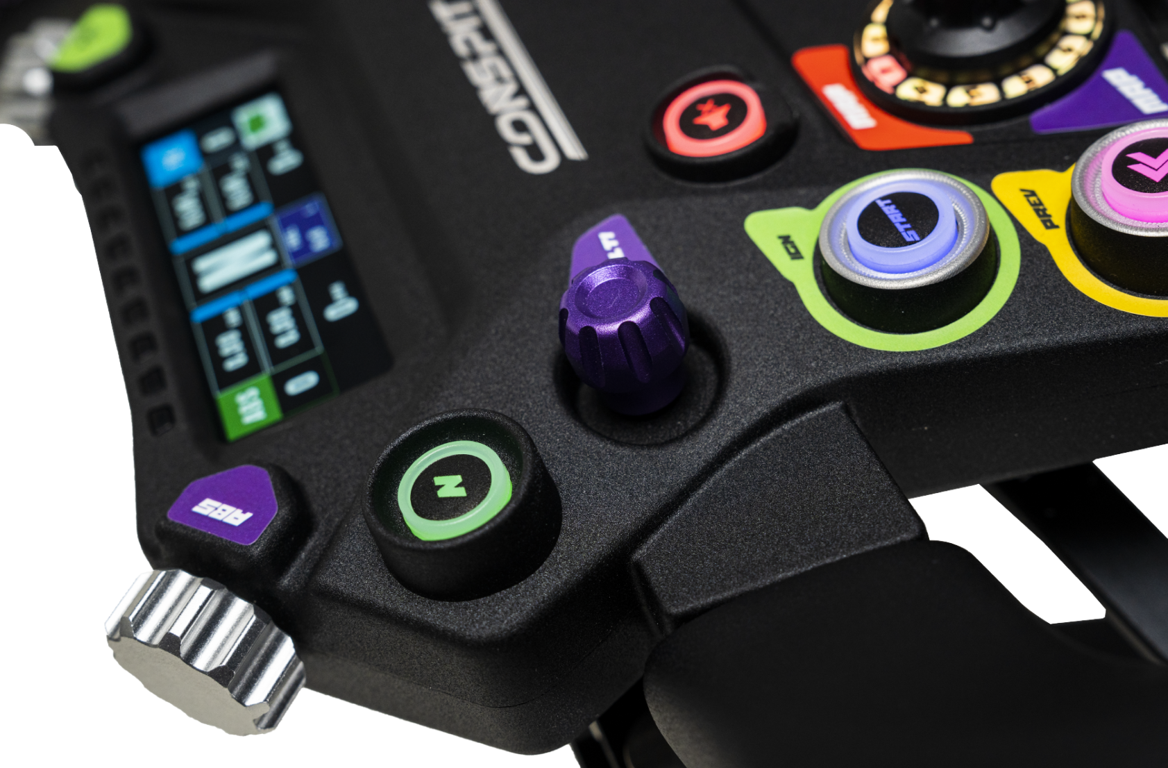 With 500g actuation force and short-throw feedback, these buttons deliver crisp inputs. Full RGB lighting works with CONSPIT Link 2.0 and SimHub for dynamic telemetry visualization.