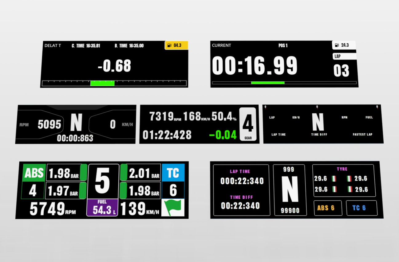CONSPIT’s self-developed screen supports 7 customizable dash pages for critical racing data, with more layouts coming via updates.