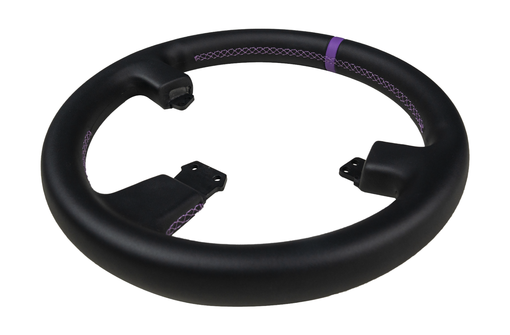 Made from wear-resistant eco-friendly microfiber, the rim features seamless stitching at the grip zones, accented with purple stitching and a center alignment marker for long-lasting comfort and precision.