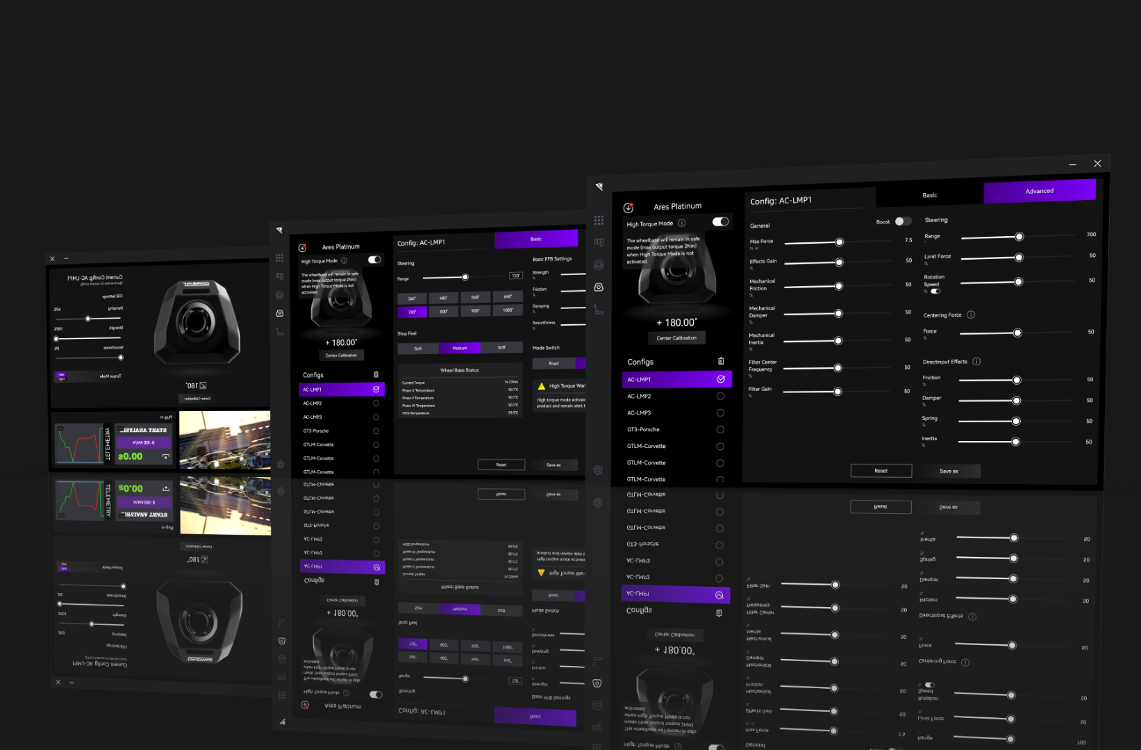 Easily configure wheelbase functions, fine-tune FFB, monitor status, and create custom presets using Conspit Link 2.0 software. Featuring official presets crafted by professional drivers and vehicle dynamics engineers, allowing for quick switching between games or vehicle setups, including presets from renowned pro drivers like Laurin Heinrich.