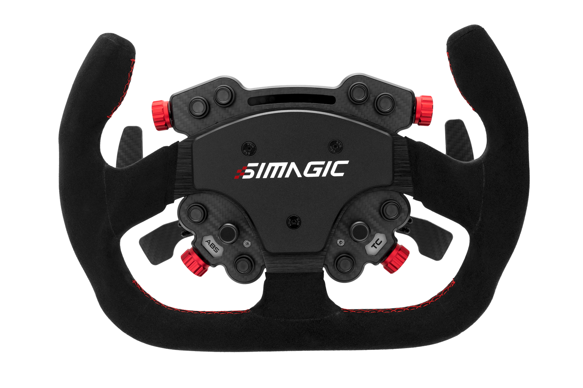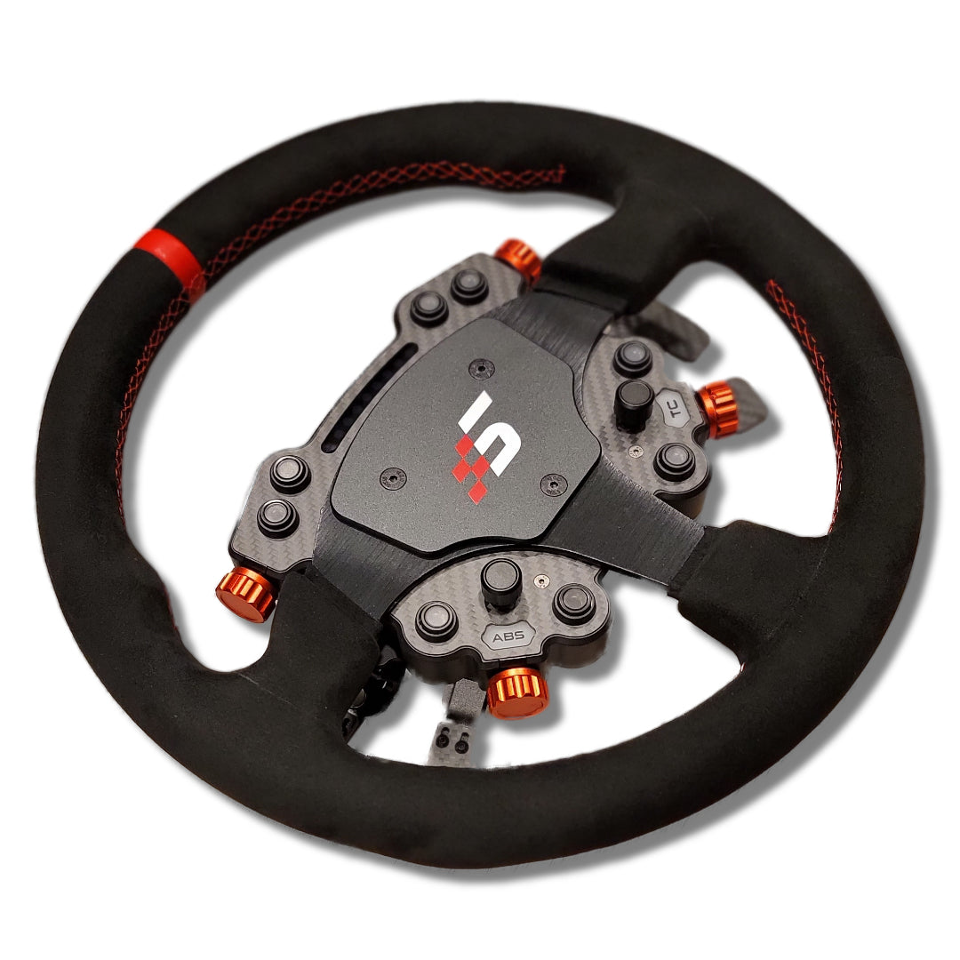 The Simagic GT Pro Wheel is a wireless racing wheel designed for use with the Simagic lineup of wheel bases. Available in multiple sizes, shapes, and finishes, it features an integrated GT Pro Hub with dual clutches and paddle shifters, offering flexibility and realism for competitive sim racers.