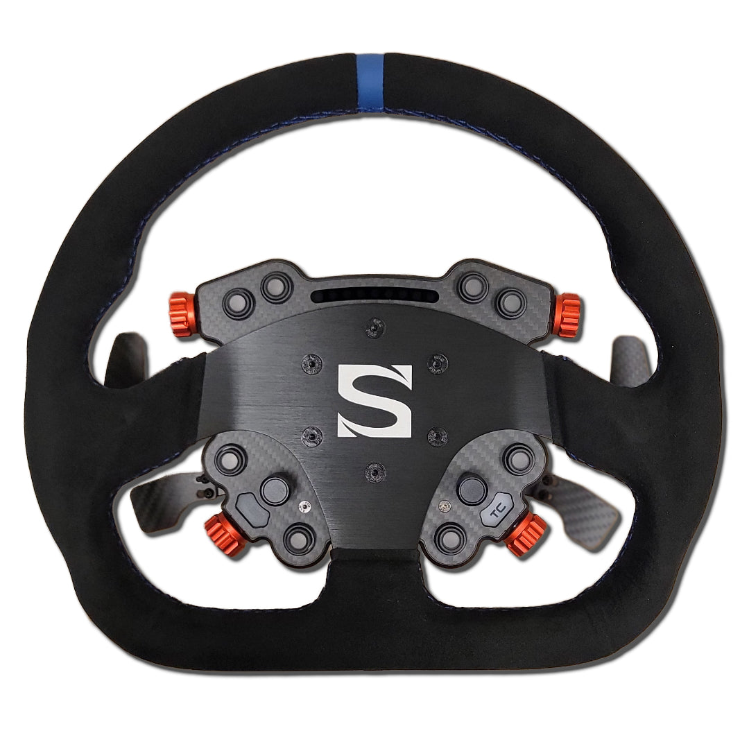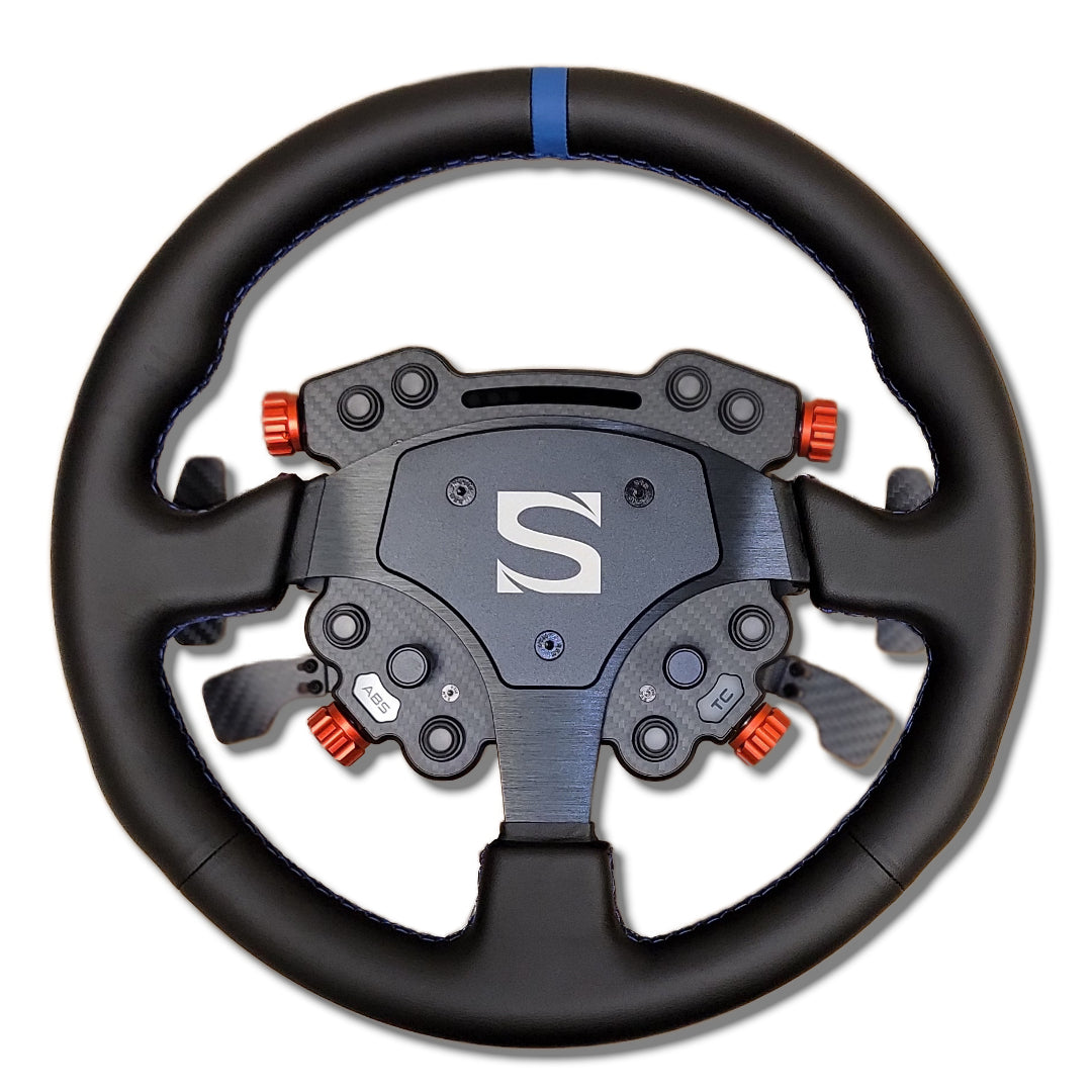 Ideal for sim racers using Simagic wheel bases who want a customizable GT-style wheel with dual clutch paddles, wireless functionality, and premium material options.